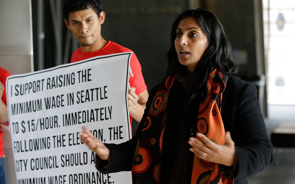 Gerade konzentrieren wir uns auf die 15 $-Mindestlohnkampagne. In einer Nachbarstadt, Seatac, erreichte eine Initiative eine Volksbefragung über einen 15 $-Mindestlohn für Flughafen- und HotelarbeiterInnen und gewann. Gemeinsam mit unserer Kampagne hat das das Thema enorm populär gemacht. Wir arbeiten mit Gewerkschaften zusammen, um Anfang nächsten Jahres eine Kundgebung mit 10.000 Menschen zu organisieren. An ihrem ersten Tag im Amt wird Kshama einen Antrag auf 15 $ Mindestlohn einbringen. Allerdings glauben wir nicht, dass die anderen Mitglieder des Stadtrats dem Antrag zustimmen werden. Deswegen wollen wir Unterschriften für eine Volksbefragung 2014 sammeln.