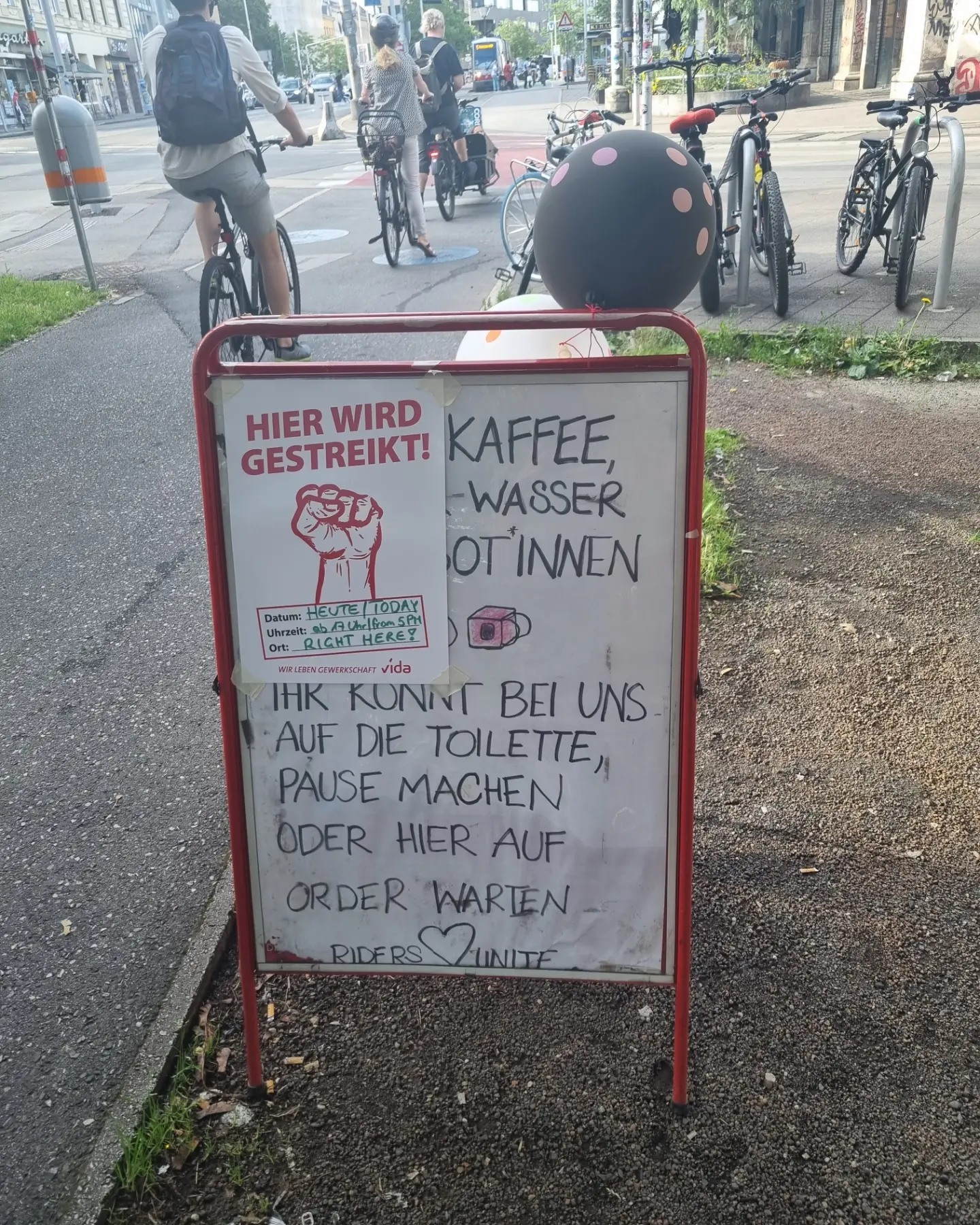Kund*innen können uns unterstützen indem sie kein Essen bestellen und beim Streik vorbeischauen. Schickt Solidaritätsbotschaften an das riders collective.
