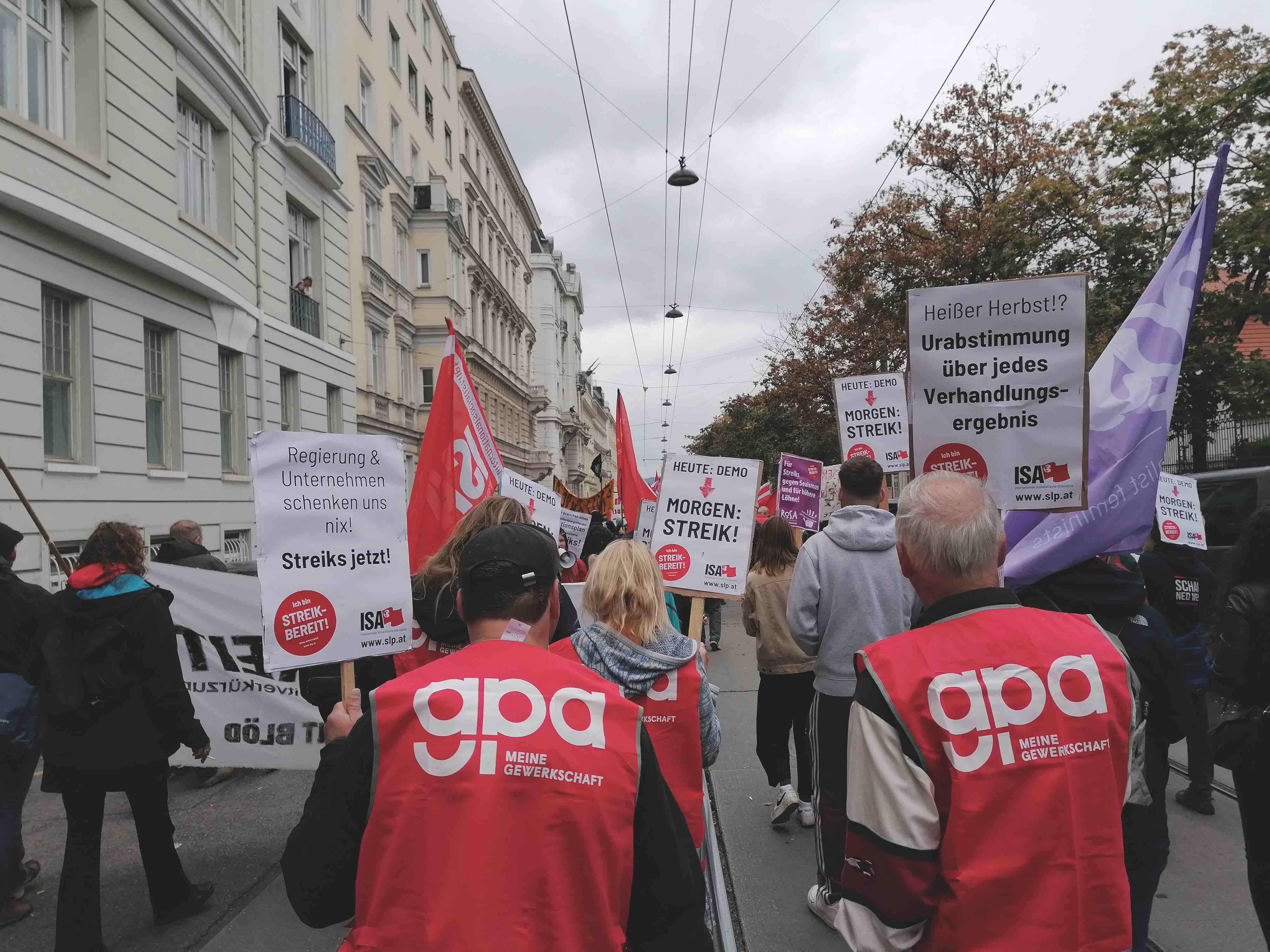 In Österreich hat die kämpferische Basisinitiative “Wir sind sozial aber nicht blöd” (die ISA-Mitglieder gemeinsam mit anderen organisieren) im Vorfeld der KV-Verhandlungen gefordert, auf einer bundesweiten Betriebsrät*innenkonferenz über die Forderungen zu entscheiden und sich dadurch auch auf den Arbeitskampf vorzubereiten. Durch Druck von unten ist jetzt zwar so eine Konferenz am 24.11. - aber so spät hat sie deutlich weniger Einfluss auf Forderungen und Arbeitskampf.