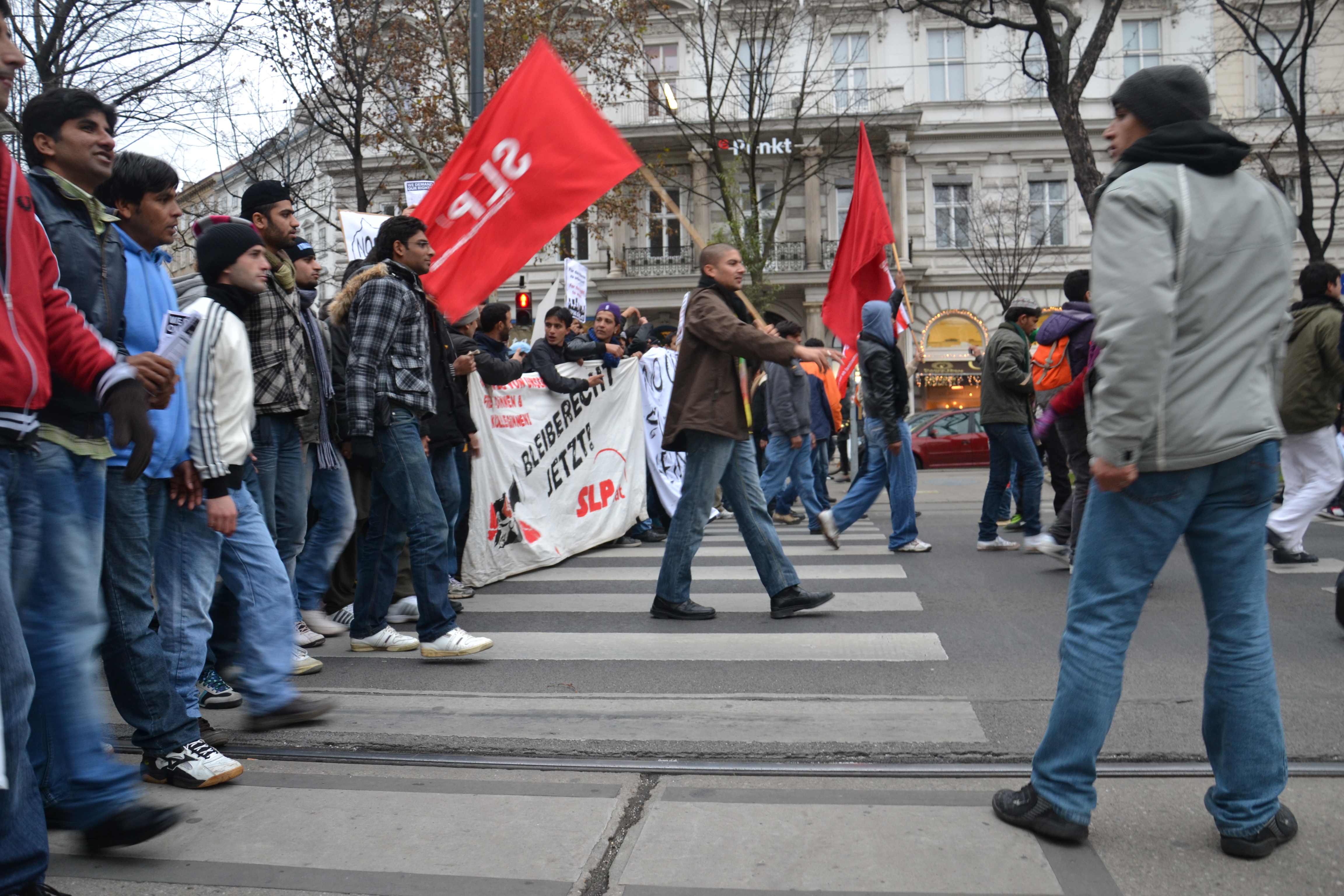 "Since November 2012, there is a refugee protest movement in Austria. In this movement, it's the refugees themselves who highlight their situation and develop their own demands. Many Austrians are active as supporters of this protest movement. Thousands have come out in support, amongst them celebrities and fighting trade unionists. In the past weeks, contacts and cooperation of the refugee movement and the trade unions intensified significantly.