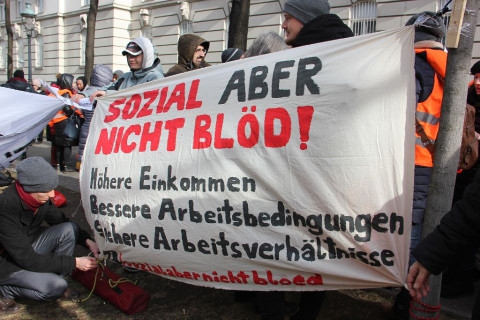 Über 120.000 Beschäftigte im privaten Sozial- und Gesundheitsbereich (SWÖ) sind im Arbeitskampf. Gleichzeitig verhandeln die kirchlichen Träger Diakonie (ca. 7500 Beschäftigte) und Caritas (ca 15.000 Beschäftigte) mit der gleichen Forderung: Die Einführung der 35h Woche. Nach dem scheitern der Verhandlungen im SWÖ am 10.02. riefen die Gewerkschaften GPA djp und VIDA zum Streik auf.