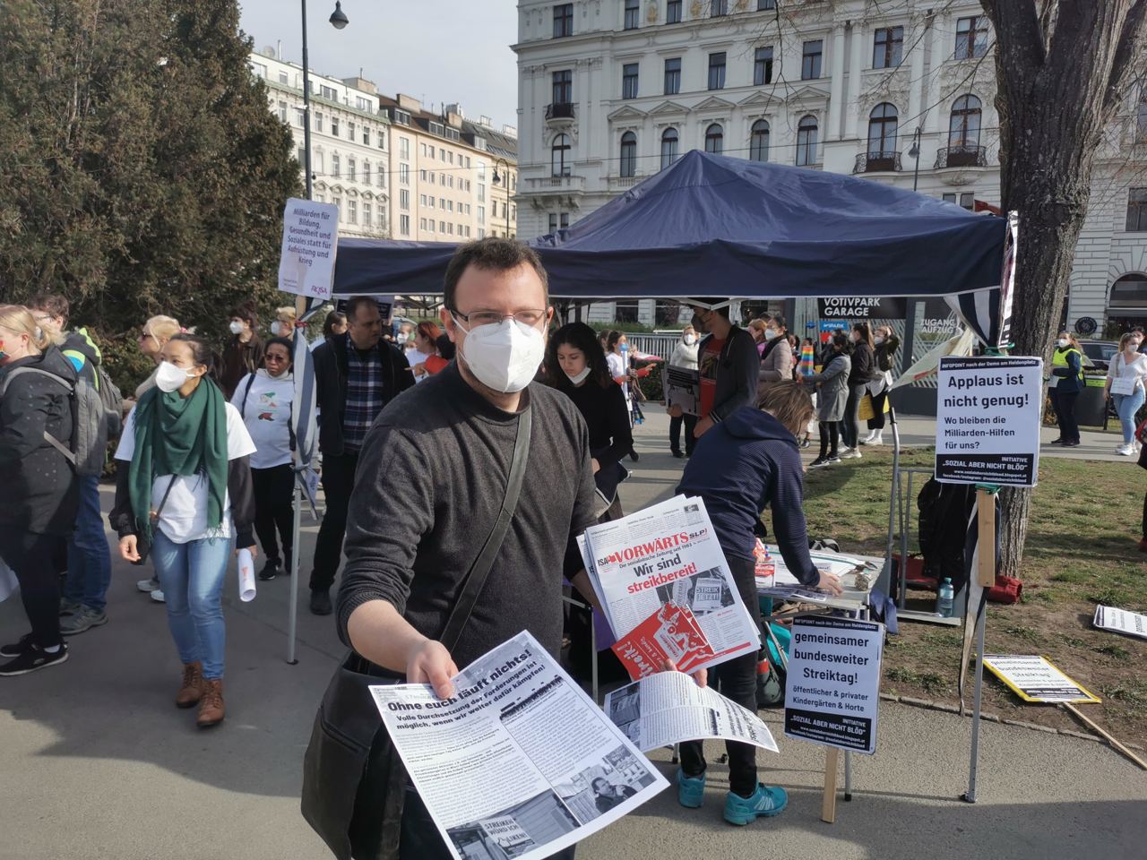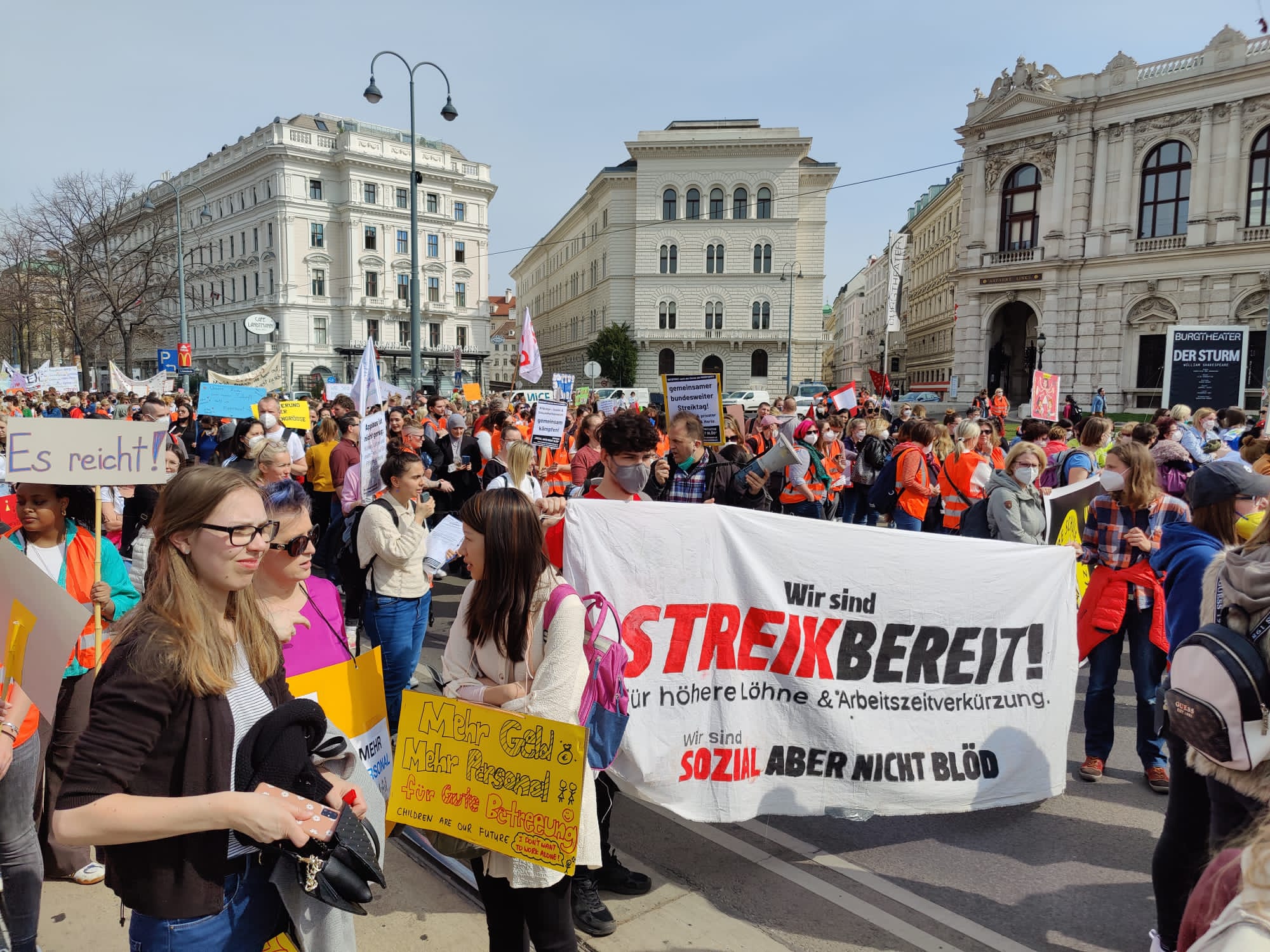 Alleine auf der Demo in Wien war 8.000 Beschäftigte, und das vormittags, mitten in der Arbeitszeit. Die meisten Einrichtungen waren zumindest bis Nachmittag geschlossen, viele den ganzen Tag. Auch wenn sich die Gewerkschaftsführung kaum traut, es auszusprechen: es war de facto ein Streik, und das ist gut so!