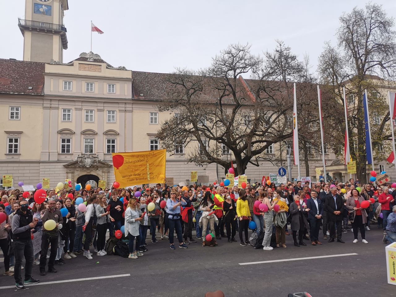 In mehreren Städten versammelten sich am 29. März tausende Elementarpädagog*innen, um für dringend notwendige Verbesserungen zu kämpfen. In Wien streikten die privaten Kindergärten, Horte und Einrichtungen der Freizeitpädagogik den ganzen Tag. In Linz fand eine gemeinsame Protestkundgebung von öffentlichen und privaten Kindergärten statt. In Klagenfurt gab es eine Demo von Beschäftigten der Gemeinde-Kindergärten.