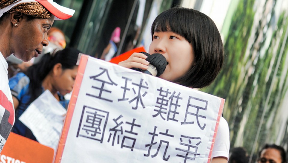 Wir hatten auch UnterstützerInnen unter den Flüchtlingen, mit denen wir in der Flüchtlingsbewegung aktiv waren. Die Flüchtlingsproteste waren Teil eines Internationalen Aktionstages vom 12. September, auf der Demonstration waren ca. 300 Menschen. Wir haben diese Demonstration gemeinsam mit der Flüchtlingsgewerkschaft organisiert, mit der wir in Flüchtlingsfragen zusammenarbeiten. Diese Proteste erzielten einen Sieg in Bezug auf die Frage von Verpflegung. Das war das Resultat von einem Jahr Kampf inklusive einer 200 Tage andauernden Besetzung. Seit Ende Mai erhalten Flüchtlinge Gutscheine, um Essen im Supermarkt kaufen zu können, anstatt Essenspakete in speziellen Shops abholen zu müssen. Dadurch haben sie mehr Auswahl und bessere Qualität der Nahrungsmittel. Es ist ein wichtiger Sieg, da er zeigt, dass es möglich ist, Zugeständnisse von der Regierung zu erkämpfen. Die Flüchtlinge durften zwar nicht wählen und haben in Hongkong faktisch keine Rechte. Viele waren dennoch in unserer Wahlkampagne aktiv und spielten eine Schlüsselrolle darin, die Flugblätter an die einzelnen Haushalte zu verteilen.