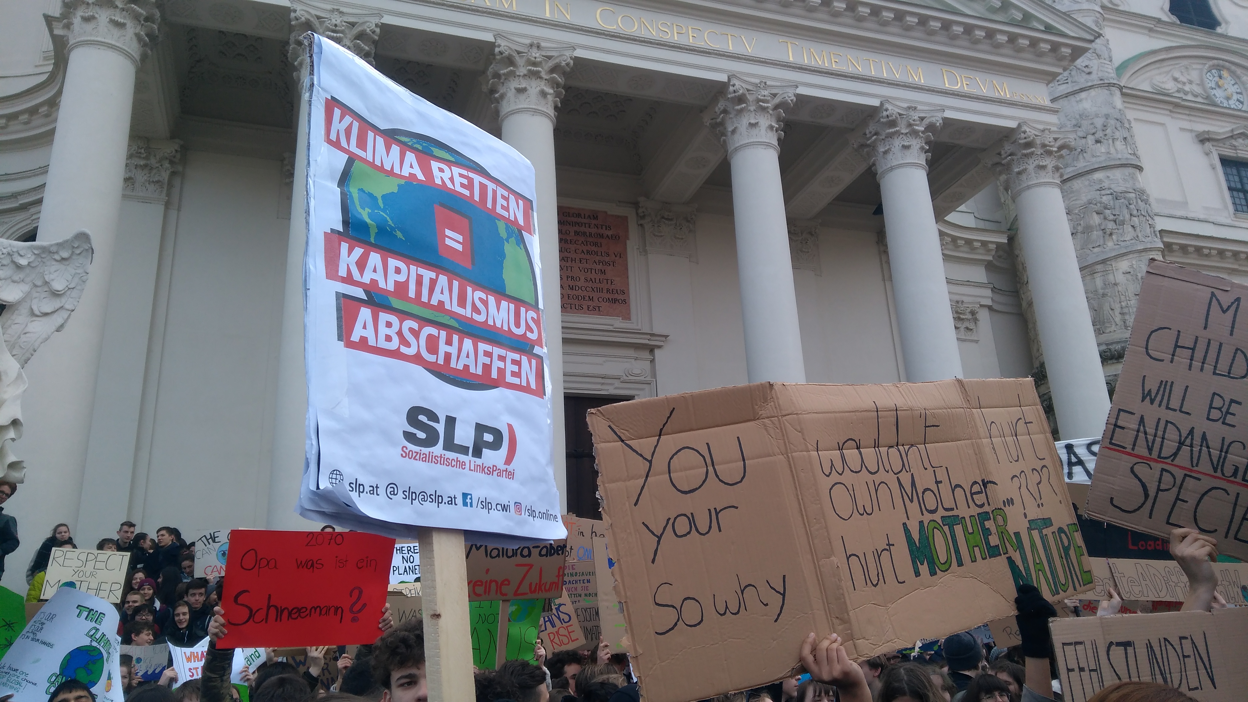 Es gibt viele gute Forderungen wie Ausbau der Öffis oder Ausstieg aus fossilen Brennstoffen. Aber wie kommen wir dorthin und wie soll das finanziert werden? Appelle an die Politiker*innen werden das nicht bewirken. Die SLP schlägt eine offene Diskussion über verschiedene Vorschläge und Ideen in der Bewegung vor. Nicht durch eine scheinbare „Überparteilichkeit“, sondern indem klar wird, wer wofür steht. Wir haben das Recht, alle Vorschläge zu kennen. Und wir brauchen demokratische Strukturen, getragen von regionalen und Schulkomitees, in denen die Aktivist*innen selbst entscheiden!