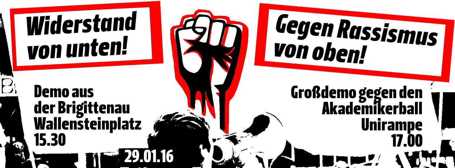 - Widerstand gegen Rassismus: Rechtsextreme raus aus der Hofburg, Schluss mit rassistischen Gesetzen sowie der Hetze gegen Muslime und Flüchtlinge!