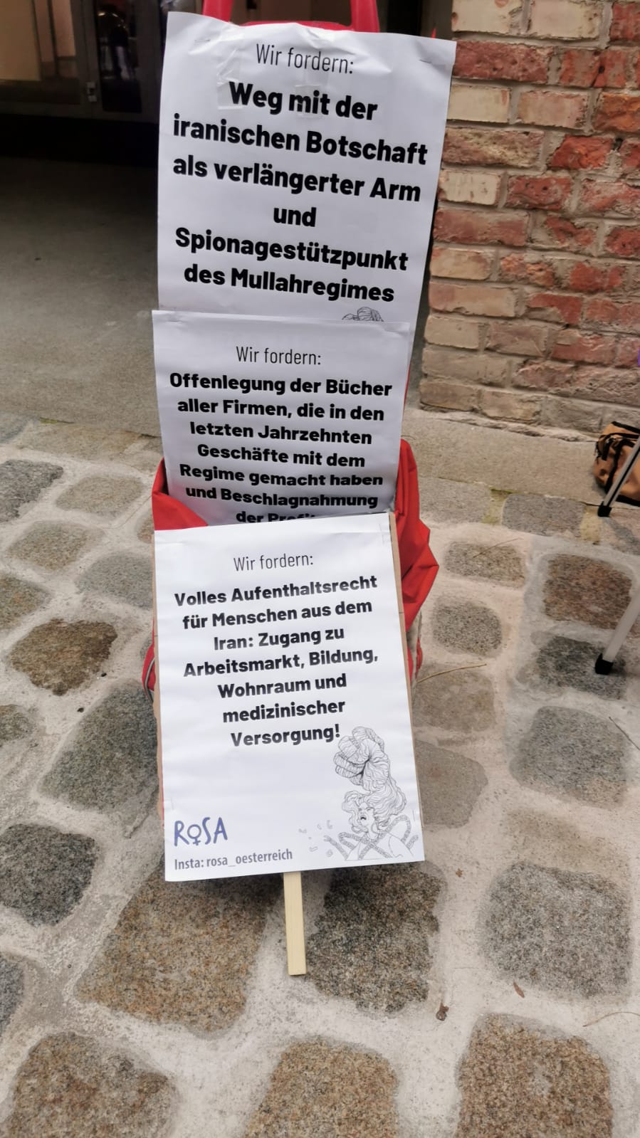 Am 9. November fand die 178. Vollversammlung der Wiener Arbeiterkammer statt. Auf Initiative von Rosa und der ISA brachte die Liste KOMintern einen Antrag zur Unterstützung der Proteste im Iran ein. Aktivistinnen von Rosa, ISA und der Solidaritätsbewegung organisierten eine Kundgebung vor der Sitzung: Die Teilnehmer*innen erhielten Flugblätter und Informationen - v.a. über die politischen und wirtschaftlichen Verflechtungen zwischen den “reichen und mächtigen” in Österreich und dem Iran. Zahlreiche Wirtschaftsdelegationen, ein Aussenminister der keine klaren Worte zum Mord an Gina Amini findet und zahlreiche Firmen die die iranische Polizei beliefern, Geschäfte mit den Revolutionsgarden machen und auch sonst von der Ausbeutung und Unterdrückung im Iran profitieren - all das ist nur die Spitze des Eisberges. Neben der Resolution gab es auch zahlreiche Vorschläge an die Teilnehmer*innen, was sie konkret machen können: dazu gehört die Forderung unterstützen, z.B. nach Offenlegung und Prüfung der Firmenunterlagen um zu sehen, wer von der brutalen Unterdrückung im Iran profitiert. Aktivist*innen von Rosa und der Solidaritätsbewegung kommen gerne zu Sitzungen von Betriebsräten oder Betriebsversammlungen um über die aktuelle Lage zu berichten. Der beschlossene Antrag kann gemeinsam mit der Einladung zur Demonstration am 25.11.: https://www.facebook.com/events/785992132551641?acontext=%7B%22event_action_history%22%3A[%7B%22surface%22%3A%22page%22%7D]%7D über diverse Verteiler abgeschickt und am Schwarzen Brett ausgehängt werden. Um nur einige der Vorschläge zu nennen. Eine Kollegin aus dem Iran bedankte sich ausdrücklich für unsere Aktion, viele waren auch an der ISA-Broschüre zum Iran interessiert.