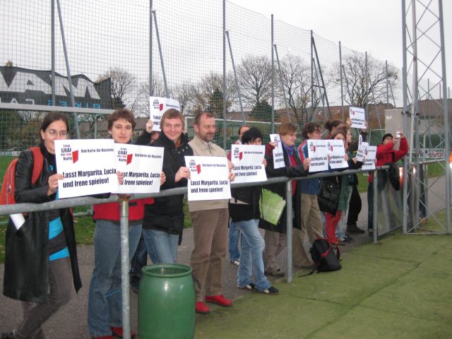 Wir wollen Fussball spielen. Als uns gesagt wurde, dass dem Co-Trainer seitens der Vereinsführung angedroht wurde, das Frauenteam unter Umständen aufzulösen, waren wir schockiert. Warum soll Frauen die Möglichkeit genommen werden, zu spielen? Nur weil man Graf nicht kritisieren darf? Angesichts der Tatsache, dass unsere Kritik mit Suspendierung beantwortet wurde verstehen wir, wenn Menschen sich Sorgen über das Klima und die Zukunft im Verein machen. Wir freuen uns, wenn Ihr euch bei uns meldet und versichern Euch, dass wir keine Namen von Kritikerinnen und Kritikern an den Vereinsvorstand weiterleiten werden.