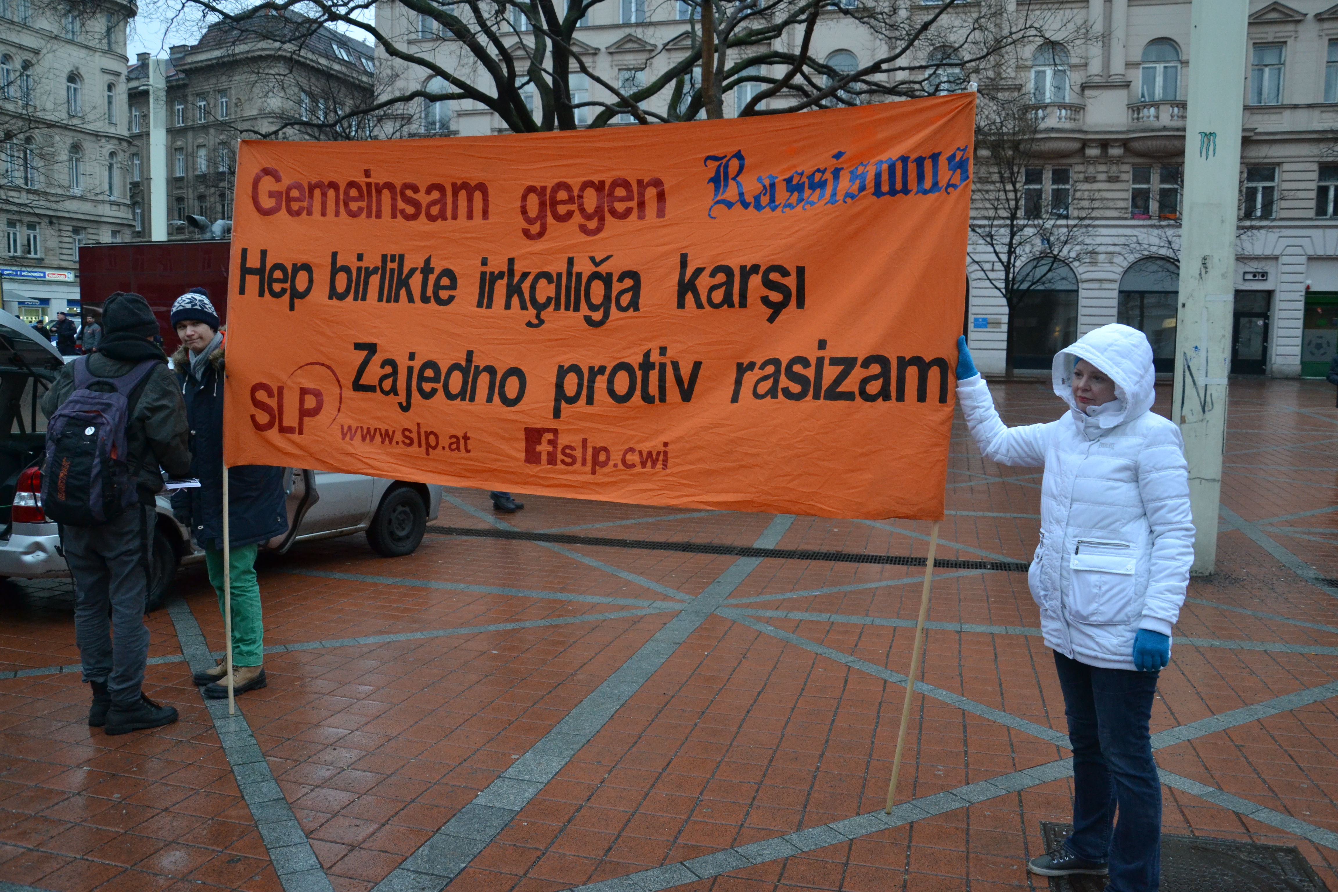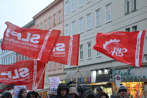 Millionen Menschen in Griechenland haben mit ihrer Stimme für Syriza gezeigt, dass sie ein Ende der kapitalistischen Kürzungspolitik verlangen. Die Tatsache, dass die neue Regierung nun Privatisierungen stoppt, Mindestlohn und Mindestpension anhebt und sich der Erpressung durch die Troika wiedersetzt, zeigt, dass es Alternativen gibt. Und zwar echte, linke Alternativen und nicht jene rechten, rassistischen Scheinalternativen von FPÖ, Pegida & Co. Der lebendige Demonstrationszug der SLP, der sich mit Reden und Flugblättern an die lokale Bevölkerung wendete stieß auf reges Interesse und fand viel Zuspruch im 20igsten und später auf seinem Weg zum Schottentor auch im 9en Bezirk.