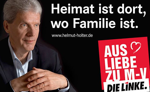 Es sollte hinterfragt werden, ob Lokalpatriotismus, wie er die Plakatkampagne im Wahlkampf mit Sprüchen wie „Aus Liebe zu M-V“ oder „Heimat ist dort, wo Familie ist“ dominierte, irgendetwas mit linker Politik zu tun hat oder eher eine Anbiederung an bürgerliche Selbstinszenierung, die bei den Wählerinnen und Wählern im Zweifel dazu führt, dass sie die Original-(Lokal-)Patrioten wählen. Ganz abgesehen davon, dass die Partei damit bei der NPD und ihrem Slogan „Aus Liebe zur Heimat“ abkupferte, was die Nazis auch trefflich ausschlachteten (siehe Bild).