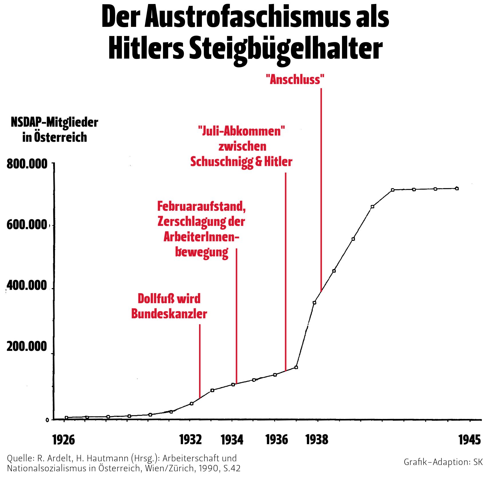 1938: Nach der Machtergreifung des Nationalsozialismus werden in den ersten Wochen rund 60.000 politische GegnerInnen verhaftet und in KZs deportiert. Das austrofaschistische Regime lieferte für die Verhaftung und Ermordung von AnhängerInnen der ArbeiterInnenbewegung die Daten.