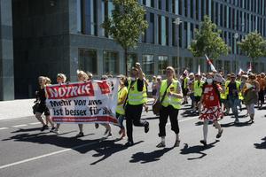 Bei allen Demonstrationen sichtbar war auch die Unterstützung der KollegInnen der CFM. Bei der Charité-Tochter gibt es immer noch einen tariflosen Zustand und die KollegInnen bereiten sich auf eine Wiederaufnahme der Auseinandersetzung vor und haben dann unser alle Solidarität verdient.