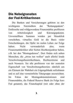 Verschwörungstheorien haben nicht erst seit den Montagsdemonstrationen wieder Zulauf erhalten. Im Zentrum steht häufig die "FED" - die US-Notenbank. Eine seriöse Auseinandersetzung mit der Rolle der FED, der Wurzel der Verschwörungstheorien und ihrer Beschränktheit, die sie zu einem stabilisierenden Faktor des Kapitalismus macht.