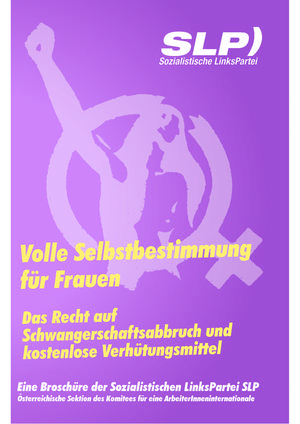 Der Kampf gegen die radikalen Abtreibungsgegner und für Frauenrechte ist seit Jahrzehnten zentraler Bestandteil der SLP-Arbeit. Daher auch diese völlig überarbeitete Neuauflage unserer Broschüre. Auf 60 Seiten geht es um die Geschichte, aber auch um Fakten zur äußerst mangelhaften Praxis der Fristenlösung. Behandelt wird das gefährliche Netzwerk der radikalen Abtreibungsgegner und ihre Verbindungen zu Parteien und Kirche. Wir berichten auch über die Kampagne der SLP und den Kampf gegen „Human Life International“ (HLI). Weil Frauenrechte aber viel mehr umfasst als „Frauenpolitik“, geht es auch um die Fragen Wohnen, Arbeiten und Soziales.