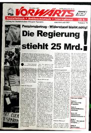 Sämtliche Ausgaben des Vorwärts - von der aktuellen bis zur Ausgabe Nummer 0 von 1983 - sind nach Klick auf die Nummer als PDF verfügbar. Bei den neueren Ausgaben werden außerdem die enthaltenen Artikel einzeln als Webansicht dargestellt.