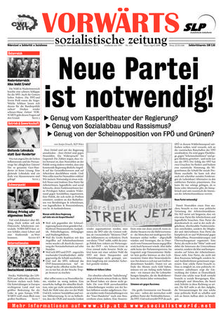 Linz – Gleich bei der ersten Jugendversammlung in der MCE erklärte der Kandidat des Ring Freiheitlicher Jungend, dass er (im Gegensatz zu vorherigen großspurigen Ankündigungen), auf eine Kandidatur zum Jugendvertrauensrat verzichten würde. Sicher auch ein Erfolg des couragierten und offenen Auftretens des SLP-Mitglieds und JVR-Kandidaten Flo Klabacher (siehe letztes Vorwärts). In der Woche nach der Gesellenprüfung wurde Flo zu einem Gespräch mit Vertretern des Arbeiterbetriebsrates (FSG) gebeten.